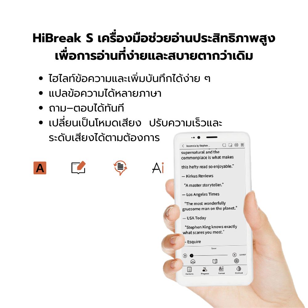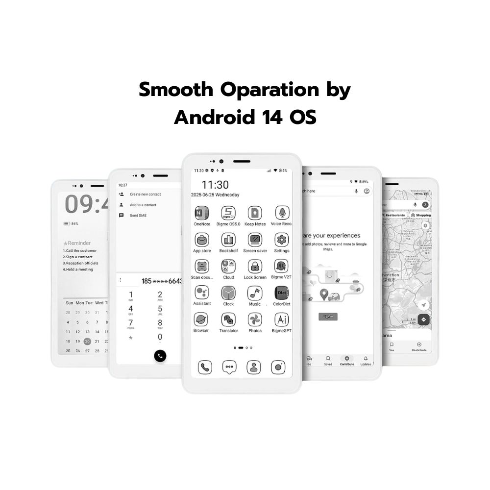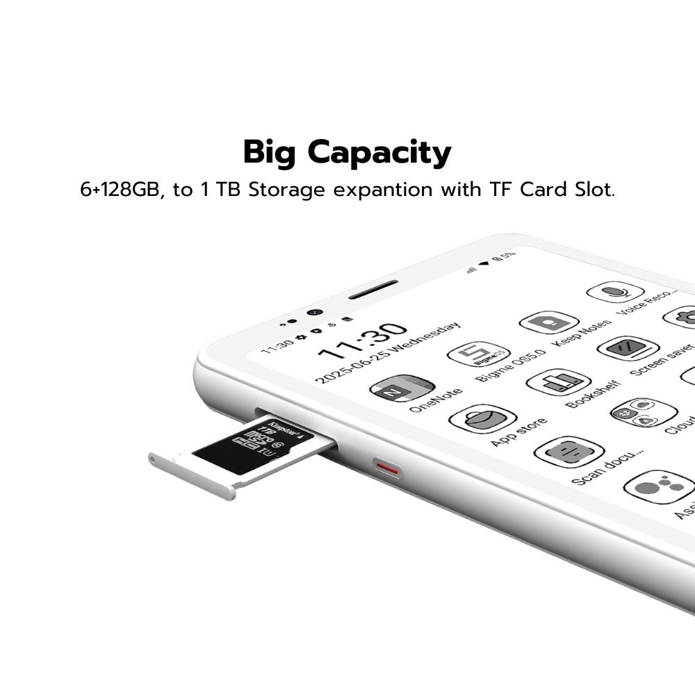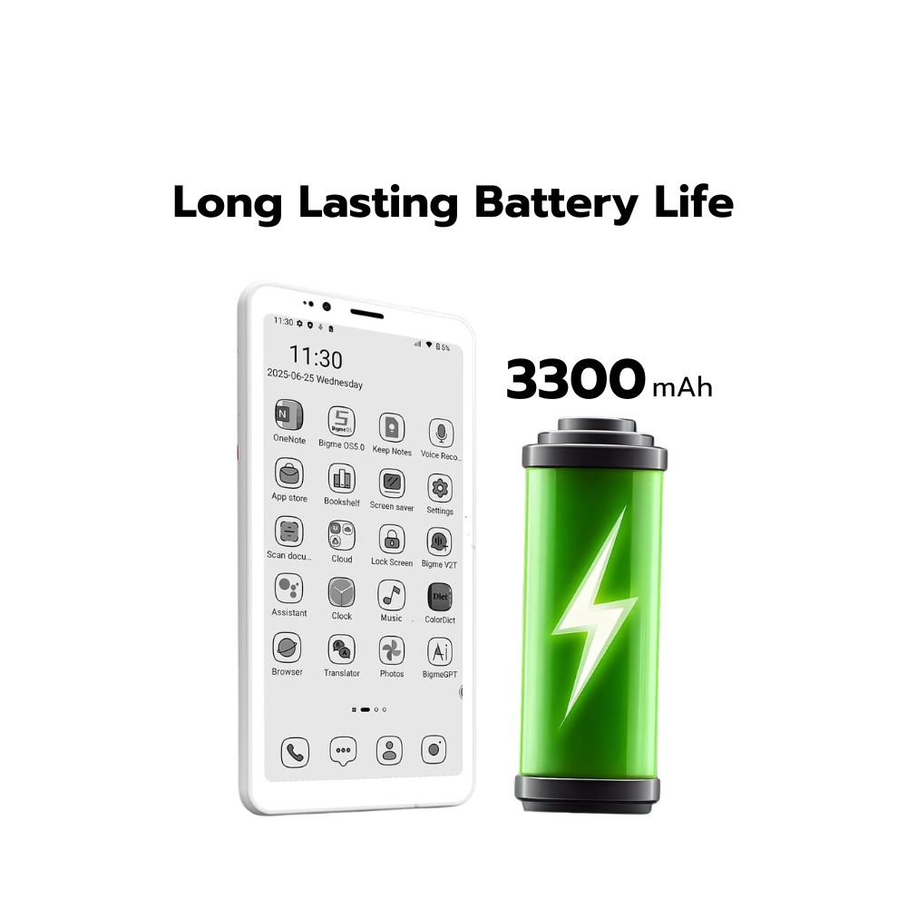 จอ E Ink ขาวดำ e-paper screen: หน้าจอขนาด 5.84 นิ้ว ความละเอียด 720×1440 พิกเซล ให้ความรู้สึกเหมือนอ่านจากกระดาษจริง สบายตา เหมาะสำหรับการอ่าน การท่องเว็บ และการชมวิดีโอ น้ำหนักเบา พกพาสะดวก: ดีไซน์บางเฉียบ น้ำหนักเบาเพียง 170 กรัม พกพาไปได้ทุกที่โดยไม่หนักกระเป๋า ปรับแสงได้ 36 ระดับ: หน้าจอที่มาพร้อมฟังก์ชันปรับแสงได้ถึง 36 ระดับ ให้คุณปรับความสว่างของหน้าจอให้เหมาะกับทุกสภาพแสง ลดอาการตาล้า และให้ประสบการณ์การดูที่สบายตาทั้งกลางวันและกลางคืน การแสดงผลที่ปลอดภัยสำหรับดวงตา: ด้วยเทคโนโลยีจอ E Ink ที่มีความละเอียดสูง เหมาะสำหรับการอ่านเป็นระยะเวลานาน โดยไม่เกิดอาการตาล้า