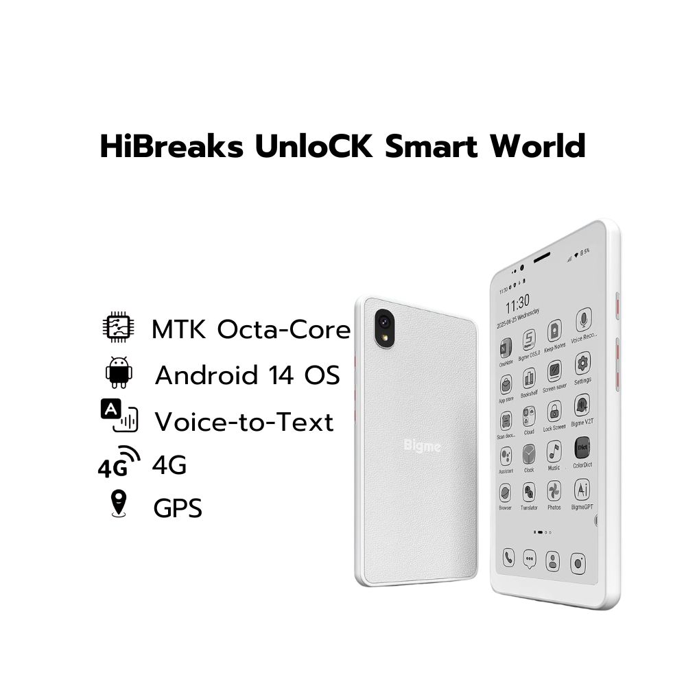 Bigme HibreakS – เครื่อง E-Ink สีที่ใส่ซิมได้ 6G + 128GB | Android 14 | แบตเตอรี่ 3300mAh | กล้อง 5MP + 8MP | สีขาว พบกับ Bigme HiBreakS เครื่อง Ereader อัจฉริยะที่มาพร้อมกับจอ ขนาด 5.84 นิ้ว ที่จะเปลี่ยนประสบการณ์การใช้งานของคุณอย่างสิ้นเชิง! เพราะใส่ซิมได้ และด้วยการออกแบบที่ผสมผสานระหว่างความสบายตาและฟังก์ชันที่ครบครัน ไม่ว่าจะเป็นการอ่าน eBook, การโทร,ท่องเว็บ, หรือชมวิดีโอ ทุกอย่างจะชัดเจนและง่ายดายต่อสายตาของคุณ