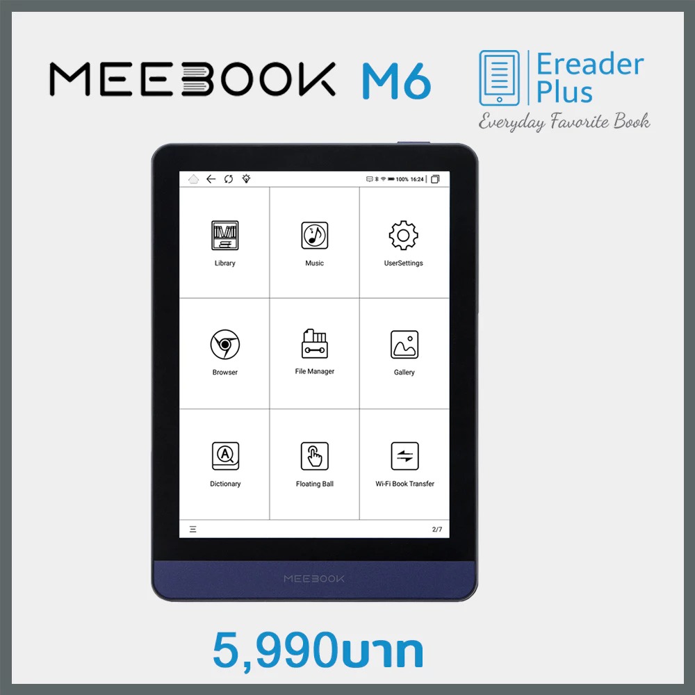 Meebook M6 รุ่น 6 นิ้ว พกพาสะดวก มาพร้อมกับหน้าจอ 6 นิ้ว พร้อมทั้งความละเอียด 300 PPI 1448*1072 แถมความบางเพียง 7mm น้ำหนักเพียง 190g จับง่ายสะดวกมือ